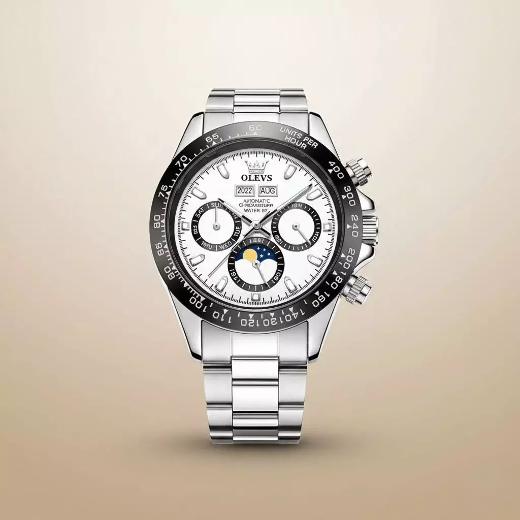 Les montres Olevs sont fabriquées avec des boîtiers en acier inoxydable, verres minéraux durcis et bracelets en cuir ou métal selon les modèles. Les matériaux sont choisis pour combiner élégance et durabilité.