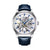 Su diseño único revela un mecanismo expuesto, ofreciendo una vista fascinante de su compleja ingeniería, ideal para los entusiastas de la relojería.