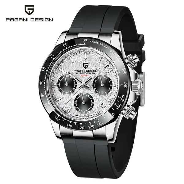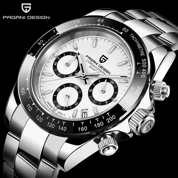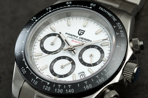 Equipado con el movimiento japonés Seiko VK63, ofrece precisión y fiabilidad excepcionales, símbolo de la excelencia de la ingeniería japonesa. Este sofisticado cronógrafo ofrece diversas funciones prácticas que combinan estilo y funcionalidad. Este reloj para hombre, sumergible hasta 100 metros, es ideal para actividades acuáticas, combinando durabilidad y serenidad durante sus aventuras. Su cristal de zafiro resistente a los arañazos garantiza una claridad duradera y protege la esfera de daños, conservando su elegancia. Perfecto para el hombre moderno, se convierte en un accesorio imprescindible, combinando rendimiento y refinamiento para el día a día.